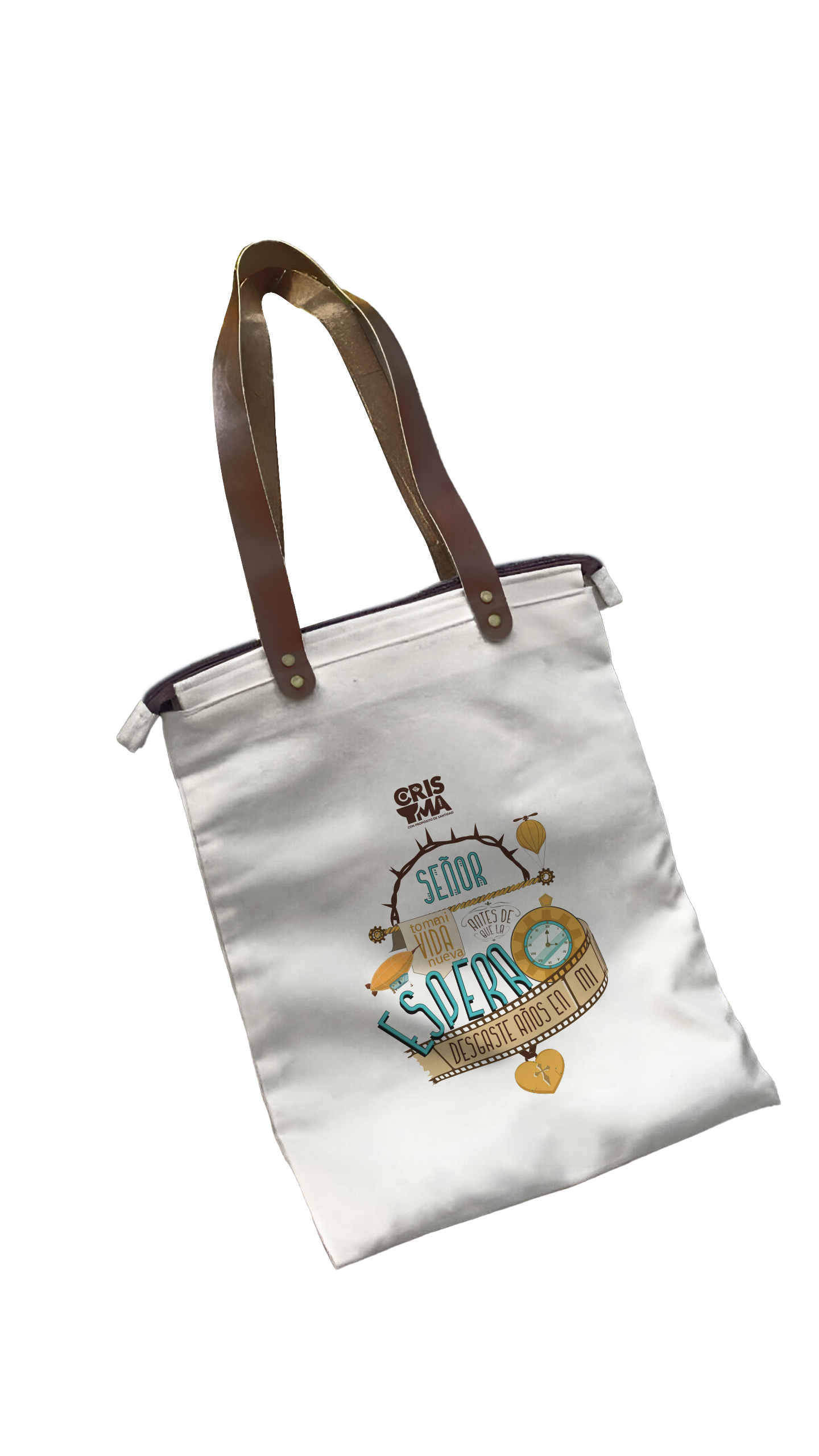 Tote Bag SEÑOR TOMA MI VIDA elaborada en microfibra suave al tacto. Incluye forro interno, bolsillo lateral para sombrilla y bolsillo invisible para objetos pequeños o dinero. Asas 100% cuero genuino. Producto estampado en alta calidad con el diseño seleccionado.